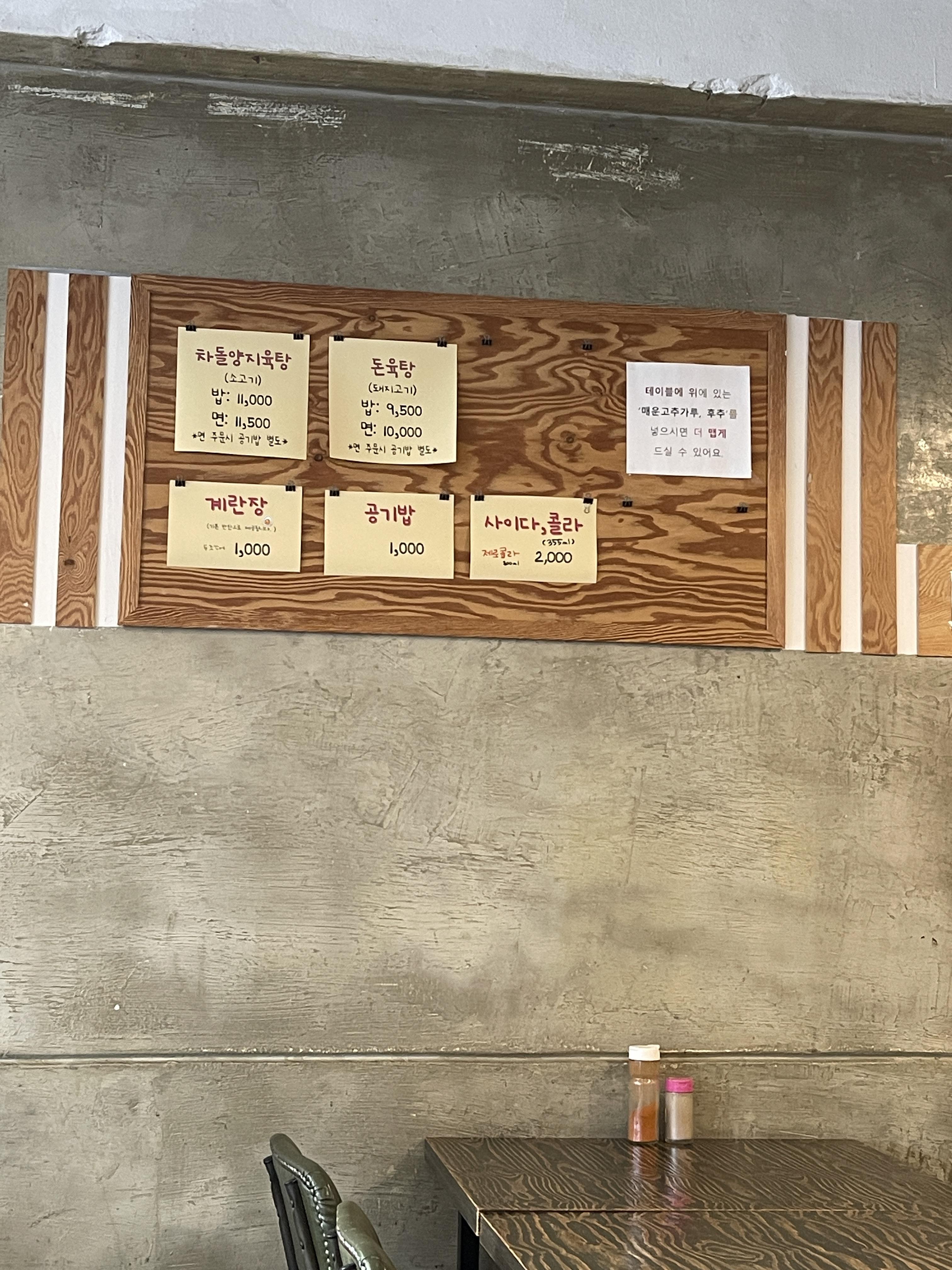 메뉴는 차돌양지육탕과 돈육탕 두 가지입니다.